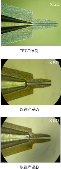 充分發(fā)揮精密加工技術(shù),嘗試細致的加工,使內(nèi)部的加工達到與連接針管的口徑一致。加工時必要的刀具也在公司內(nèi)部制作,其加工精度可達到 0.001mm,成功的減少了流動中材料分離。