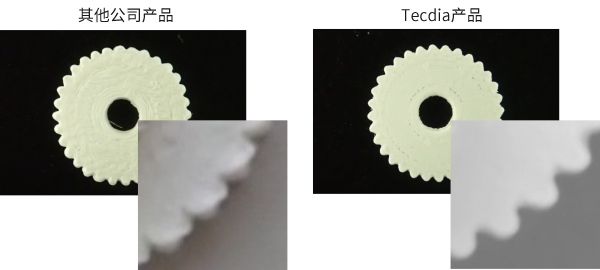 切換成TECDIA制作的精密點膠針頭后,只需通過正常的3D打印工序便能完成精密齒輪,無需使用銼刀進行后續(xù)工序。而與此同時,我們?yōu)榱藢で蟾徊降木?,提出將針頭的前端內經制作成100μm的方案,目前設計正在評估之中。