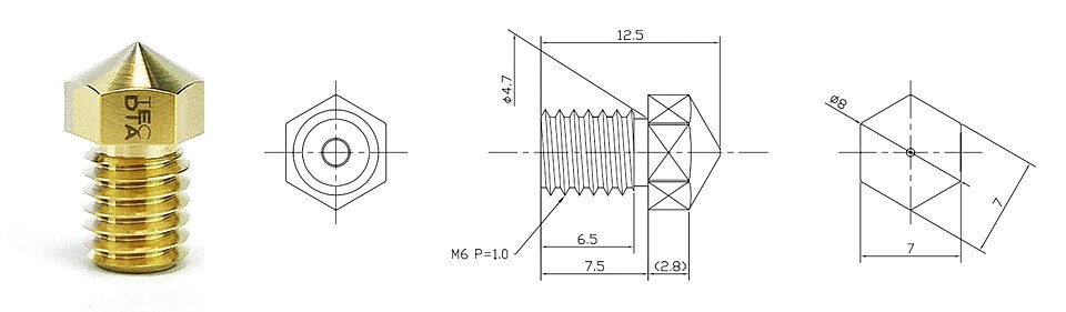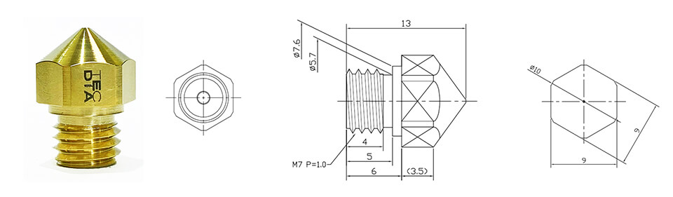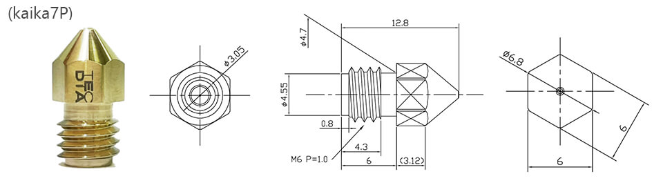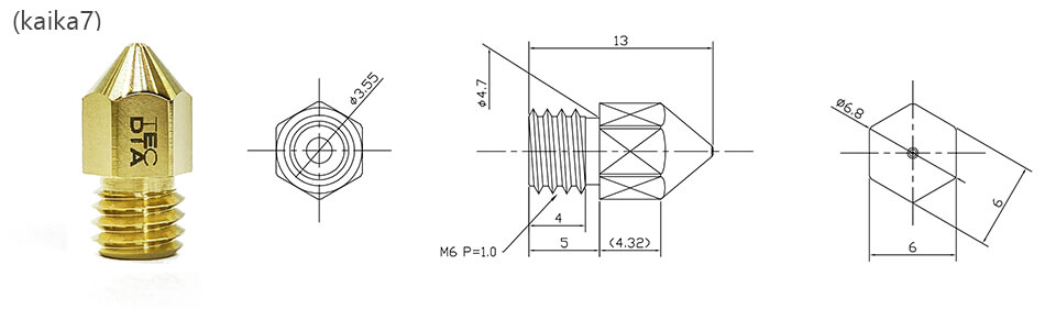 テフロンチューブをノズルに挿さないオリジナル形狀で、フィラメントを充分に溶かすことができます。