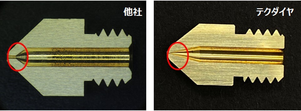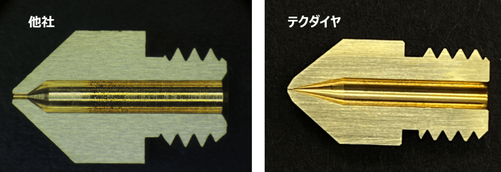 ノズル內(nèi)部の加工中に生じる傷や凸凹を獨自の加工技術(shù)で研磨。表面の荒れを抑制し、材料の流動性を向上させました。